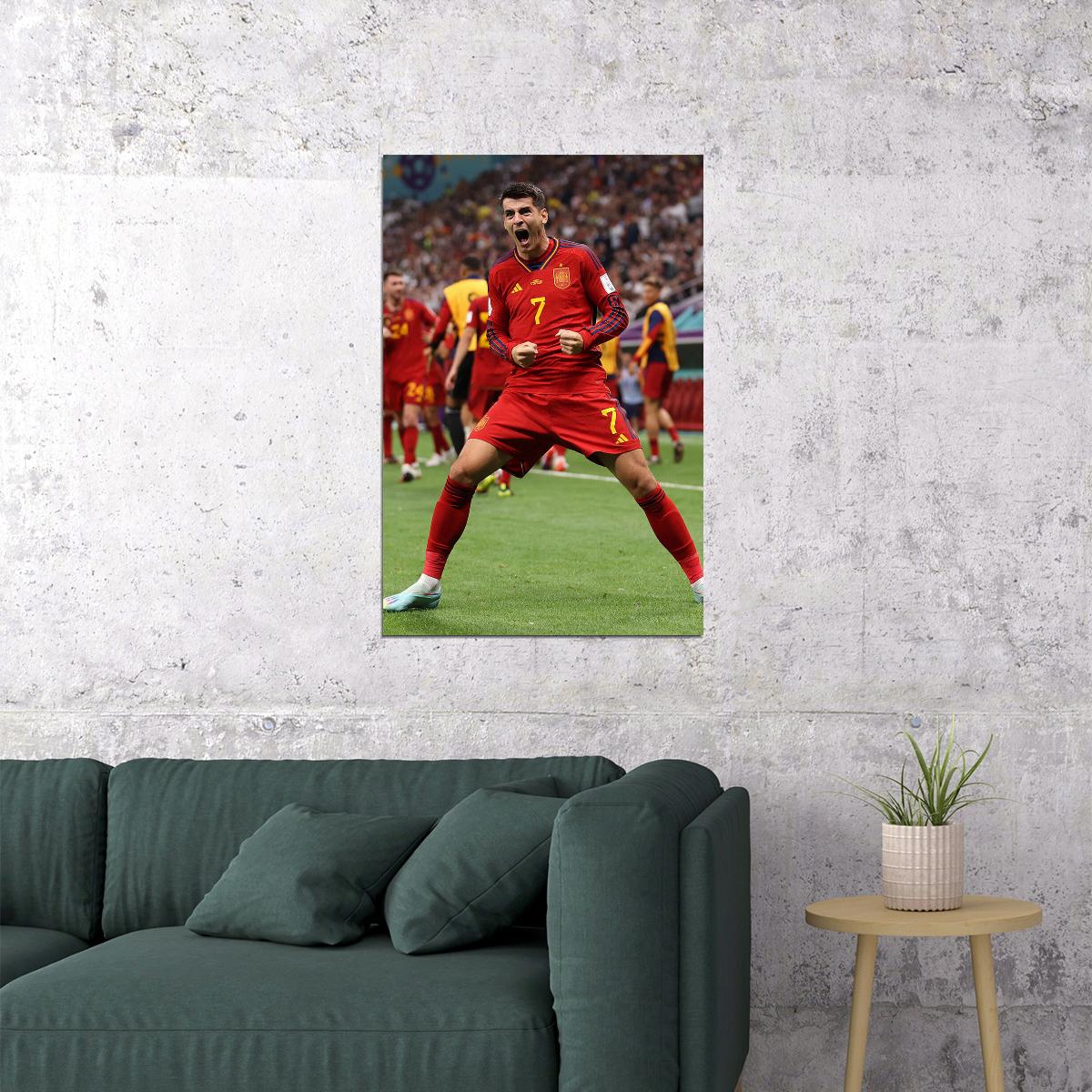 Perfect for Every Sports Fan: Alvaro Morata Goal Celebration Spain World Cup Poster Wall Art Print Home Wall Decor elevates your space and adds a touch of motivation and inspiration. From legendary athletes to memorable game scenes, this poster captures the essence of athletic excellence.