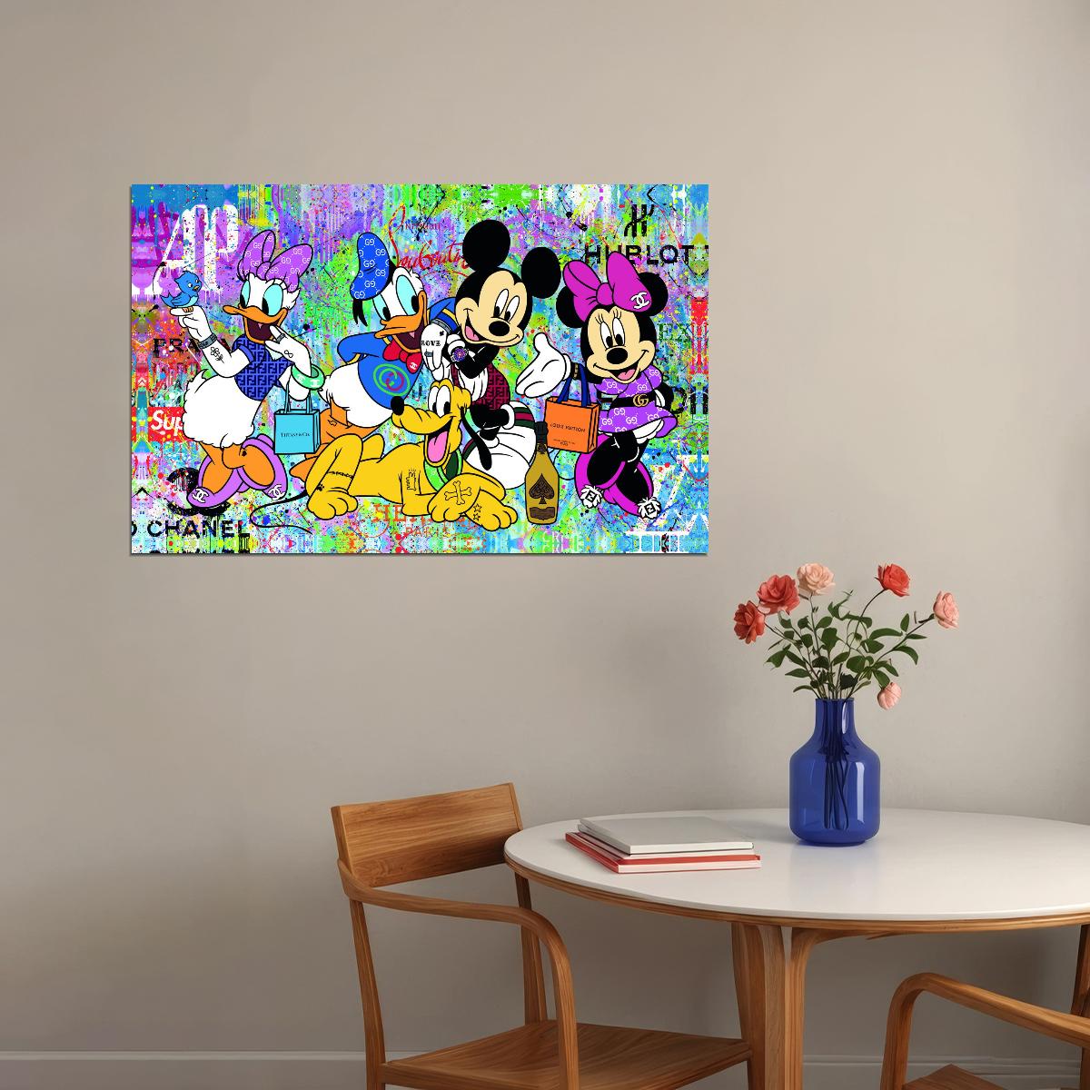 Disney Characters Graffiti Art Poster Mickey and Friends Wall Decor Colorful Urban Pop Art Cartoon Style Wall Print