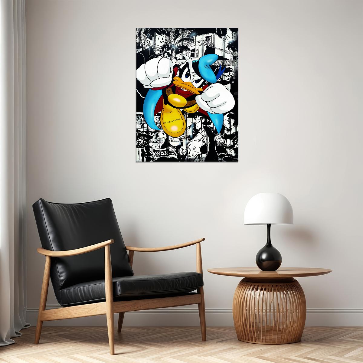 Donald Duck Boxing Graffiti Art Poster Bold Urban Wall Decor Cartoon Pop Art Style Wall Print