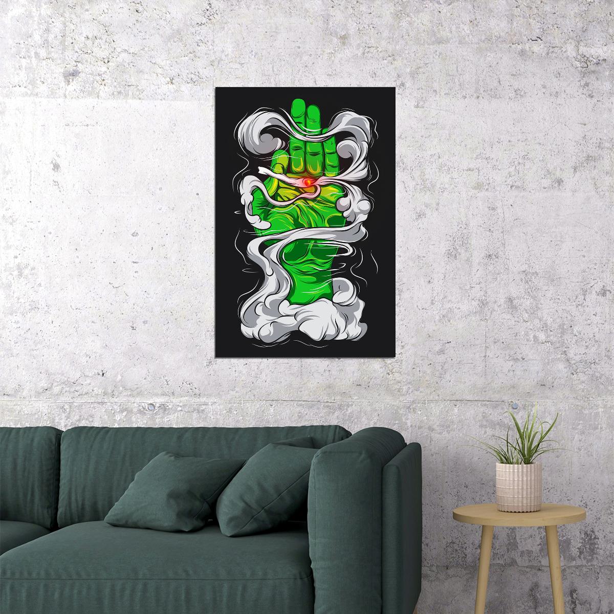 Pyschedelic Leaf Marijuana Theme Green Poster Wall Art Print Home Wall Decor